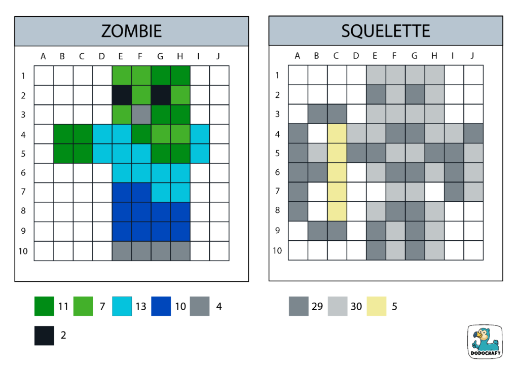 Pixel Art Minecraft 10×10 Zombie Squelette