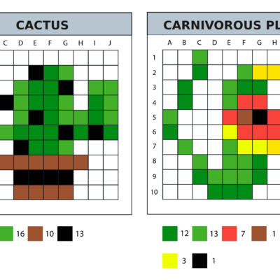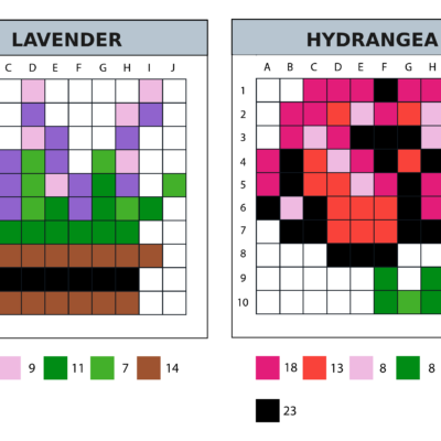 4 plant, flower and nature-themed pixel art 10×10 templates.